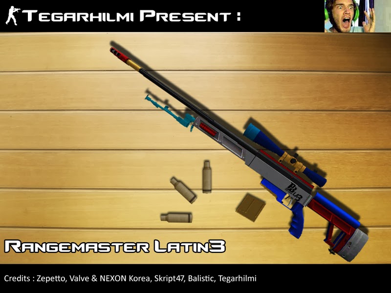 | Bosen sama garena pindah ke Latin...wkwkwkwk Hari ini ane akan share skin rangemaster hasil recolour texture ane, anda penasaran ? sama saya juga :v. Nama senjatanya Rangemaster Latin, mau liat screenshot previewnya ? liat aja dibawah ini :v susah-susah amat.(wuis...woles man) Screenshot : Credits : Zepetto - Creator, Texture Rangemaster, Addons, scope Valve & NEXON Korea - Hands CSO Skript47 - Model Convert PB to GTA Balistic - hand rig, bones, sounds set, animations Tegarhilmi - Recolour Texture Rangemaster